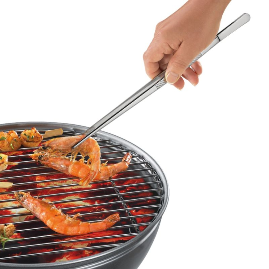 Su especialidad es el trabajo de precisión. Las pinzas para asar y voltear de KÜCHENPROFI lo consiguen todo: desde el impresionante filete hasta la aceitosa rodaja de berenjena o el pequeño champiñón. La punta de este ingenioso utensilio de acero inoxidable está dentada en el interior para un agarre aún mejor. El mango permite ajustar fácilmente la firmeza del agarre. Son ideales para voltear pescado, carne o verduras. También son muy populares en la mesa para untar antipasti, hamburguesas, dumplings o sushi.