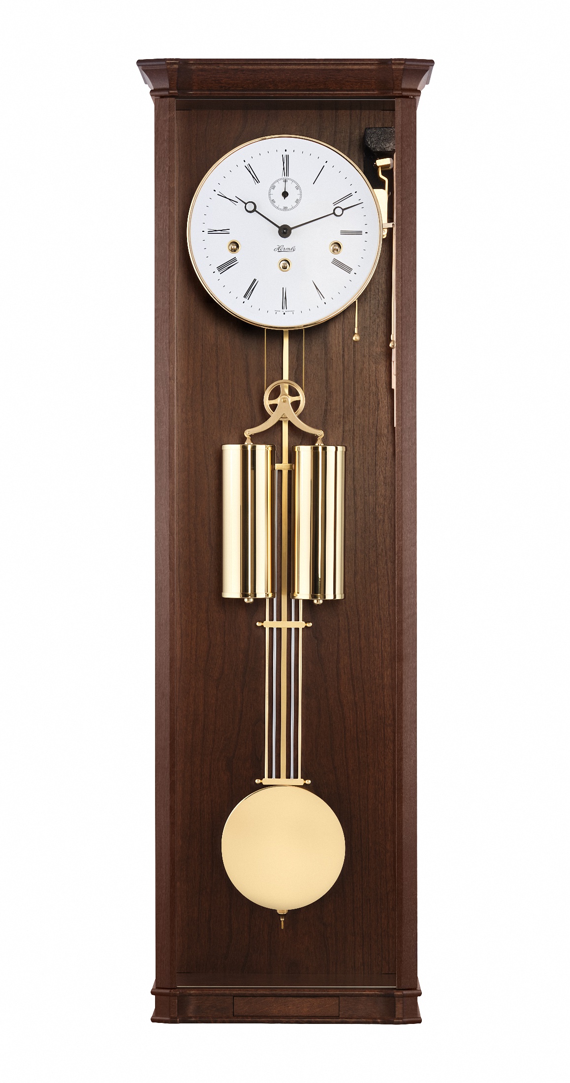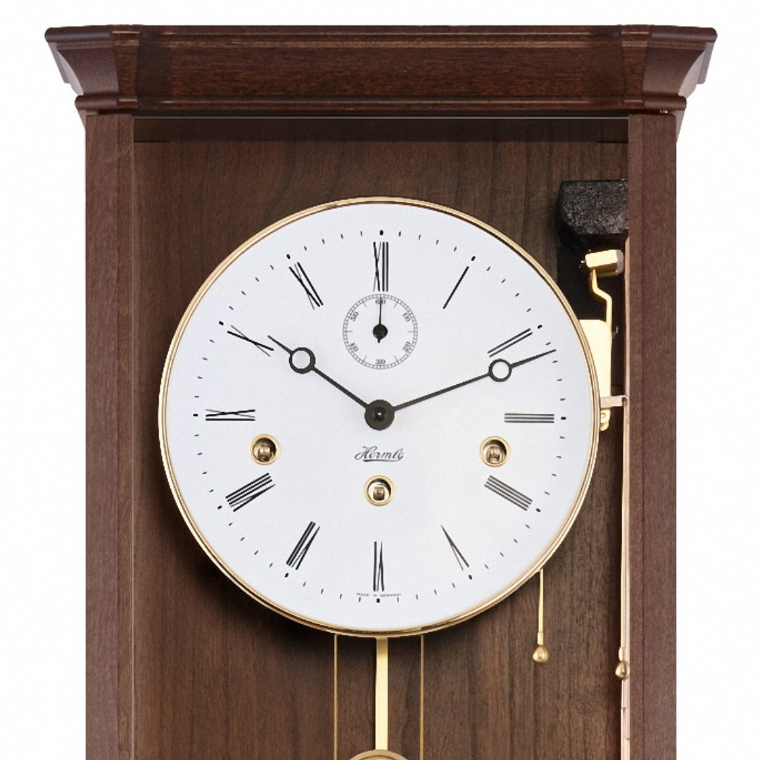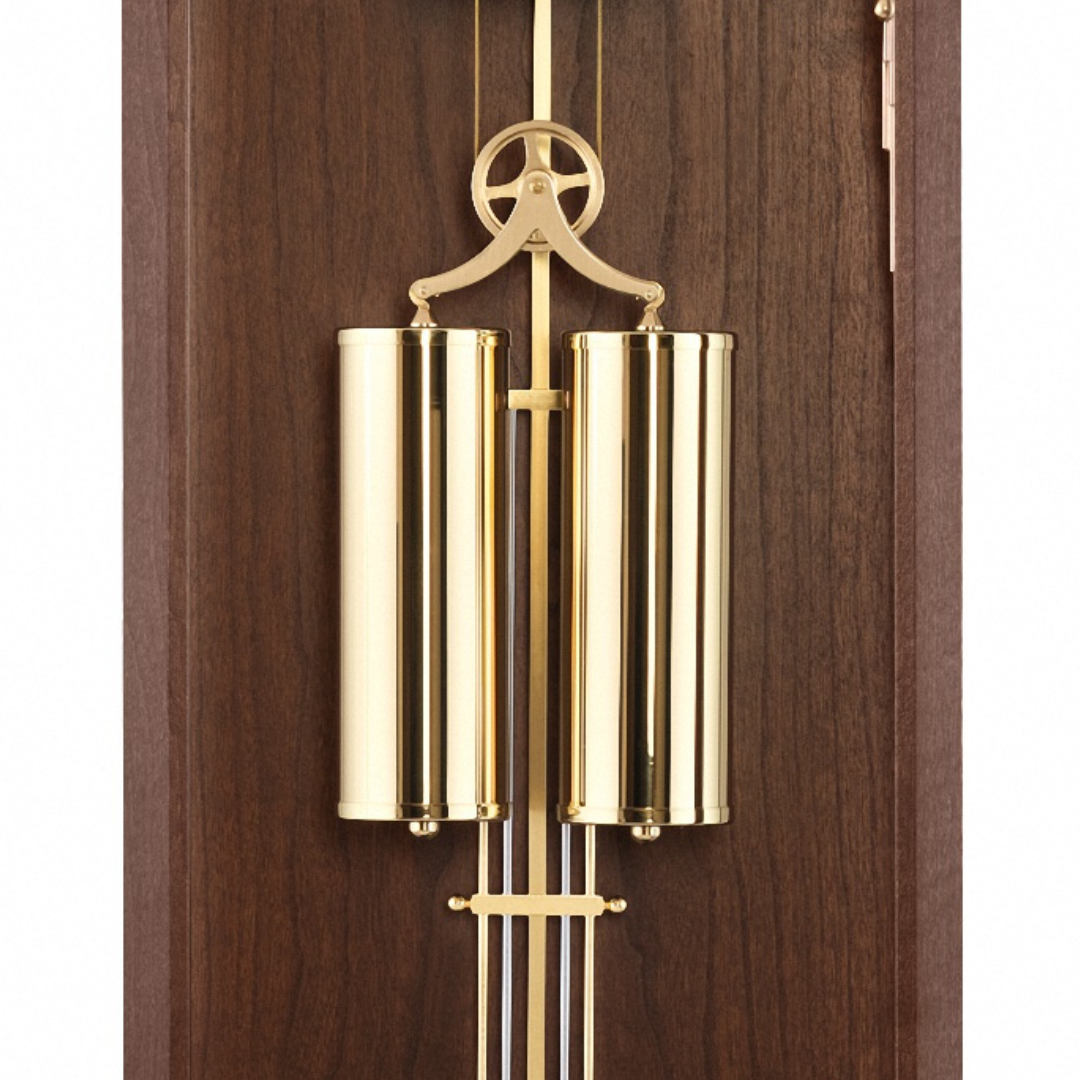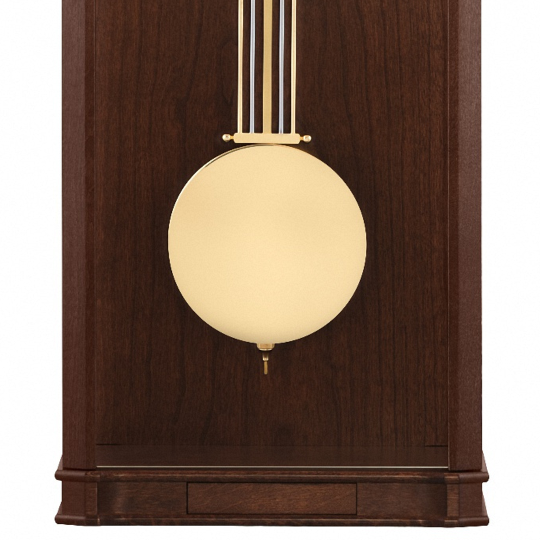El diseño del nuevo reloj de muralla en nogal y latón combina elementos clásicos con una construcción de caja de filigrana, adecuada para hoy. El reloj está equipado con segundero. Grandes superficies de vidrio, como parte del diseño, muestran el intrincado funcionamiento del movimiento mecánico (carillón Westminster 4/4 con apagado automático nocturno). La puerta está equipada con una cerradura magnética. Con un compartimiento para llaves integrado y una artesanía de precisión de alta calidad, este reloj representa un valor duradero para generaciones. Hecho a mano de forma sostenible en el sur de Alemania con precisión a partir de maderas macizas locales.