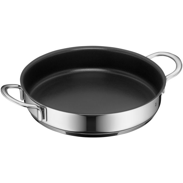con su tamaño compacto y que ahorra espacio se adapta especialmente bien a las necesidades de los hogares pequeños y a la preparación de porciones más pequeñas. La minipaila para servir con excelente revestimiento antiadherente PermaDur y 18 cm de diámetro tiene el fondo apto para todo tipo de cocinas TransTherm® y, gracias a la óptima distribución y almacenamiento del calor, permite freír con ahorro de energía en cualquier cocina, incluida la inducción. El amplio borde vertedor hace que verter líquidos sin goteo sea un juego de niños. Fabricado en Cromargan®: acero inoxidable, duradero y fácil de cuidar, es ideal para preparar porciones más pequeñas de una amplia variedad de platos fritos y, gracias a las dos asas laterales, también tiene un buen aspecto a la hora de servir en la mesa.